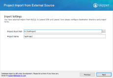 Next steps are to enter your project path and name, configure project and run automatic scan of the target database. After a short time, you see imported database as prepared entities in your Skipper project.